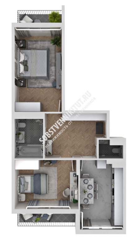 - чистовая отделка с мебелью и техникой